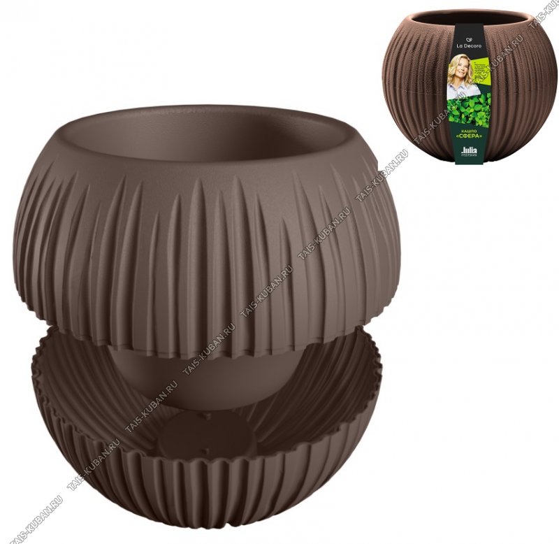 Кашпо "Сфера" тёмн.корич 1,7л d13,5 h21cм,"корпус-матрёшка",ребрист.поверх (8)