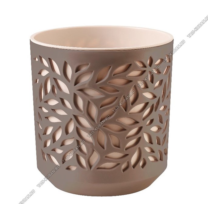 Кашпо "Листья" мокачино 2,5л вклад.пудра d16 h17cм (12)