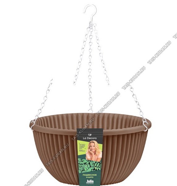Кашпо подвесн "Верде" т.корич 6л d26 h15cм,металл.подвесы,клапан д/слива (10)