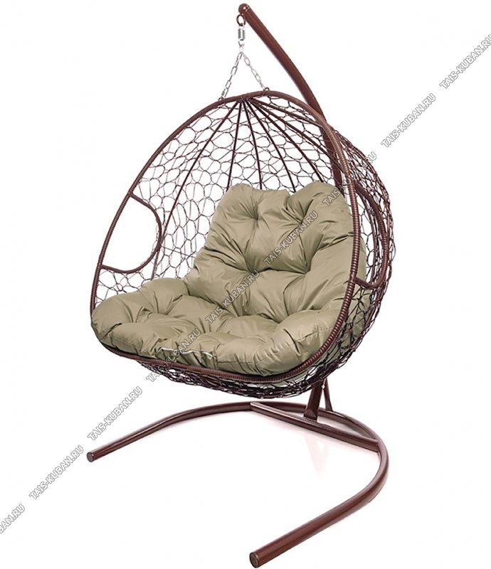 Кресло "Для двоих" коричн/беж, на стойке,подвесное ,искусствен.ротанг,каркас метал.труба (126х116 глуб.73см h193см) подушка синтепон+водоотал.ткань,нагруз.до 160кг (1)