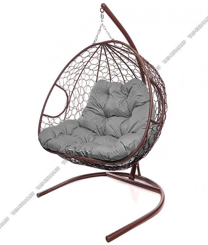 Кресло "Для двоих" до 160кг, коричневый, подушка серая (1)