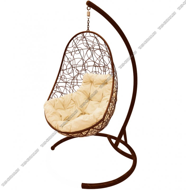 Кресло "Овал" коричн/бежев, на стойке,подвесное ,искусствен.ротанг,каркас метал.труба (83х119 глуб.70см h186см) подушка синтепон+водоотал.ткань,нагруз.до 120кг (1)