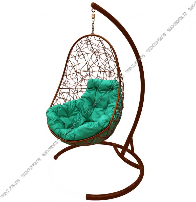 Кресло "Овал" коричн/зелен, на стойке,подвесное ,искусствен.ротанг,каркас метал.труба (83х119 глуб.70см h186см) подушка синтепон+водоотал.ткань,нагруз.до 120кг (1)