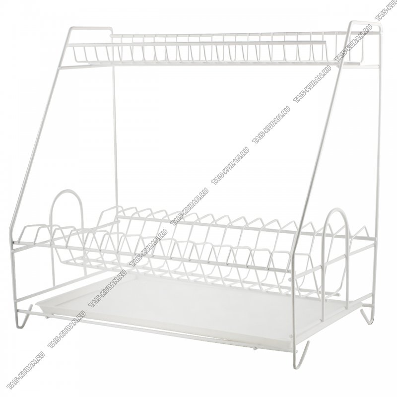 Сушилка д/посуды настольн "трапеция" 2-х яр на 15 тар.(L40х24см h38см) окраш.бел,пласт.поддон (2)
