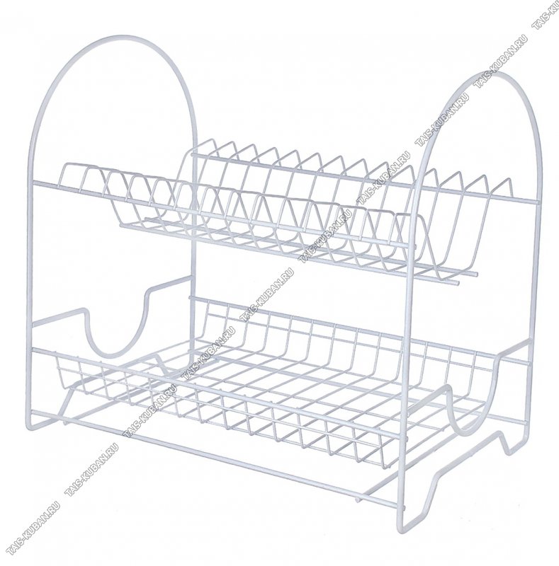Сушилка д/посуды настольн "Люкс" 2-х яр на 14 тарел.(L38х24см h35см) окраш.белый,пласт.поддон (2)