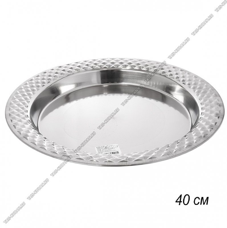 Блюдо (металл) кругл d40см,широк.борт с "ромбами"