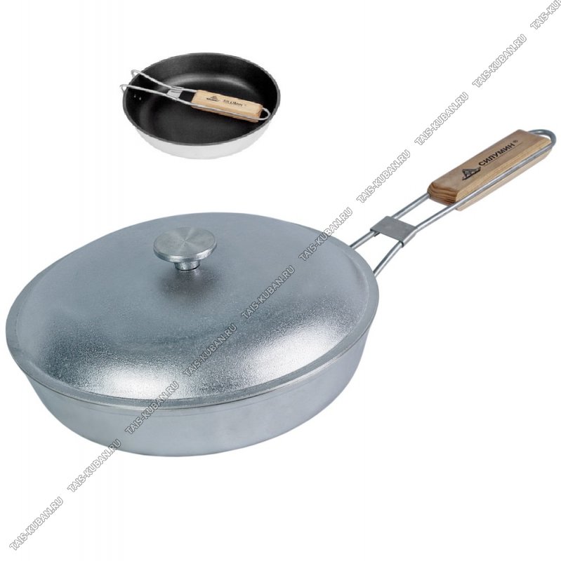 прямой борт h6,5см,толщина стенки/дна 4мм,складная ручка металл+дерево