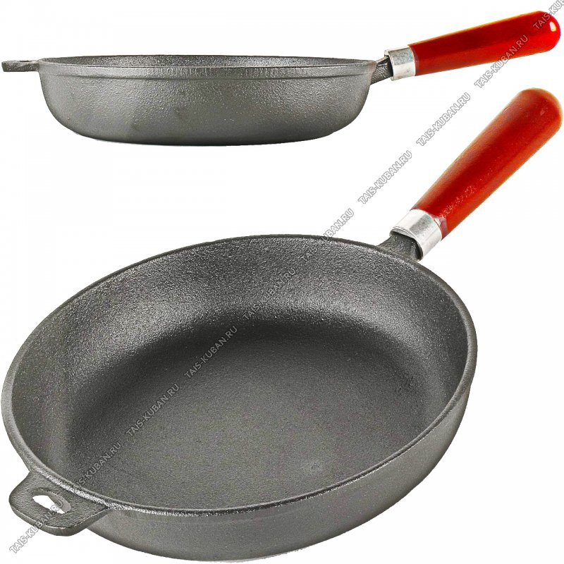 Сковорода (глубок) дерев.руч d30 h6,5см, доп. Сковорода (глубок) дерев.руч d30 h6,5см, доп."ушко",толщ.стен/дна 3мм,черн,красн.дерев