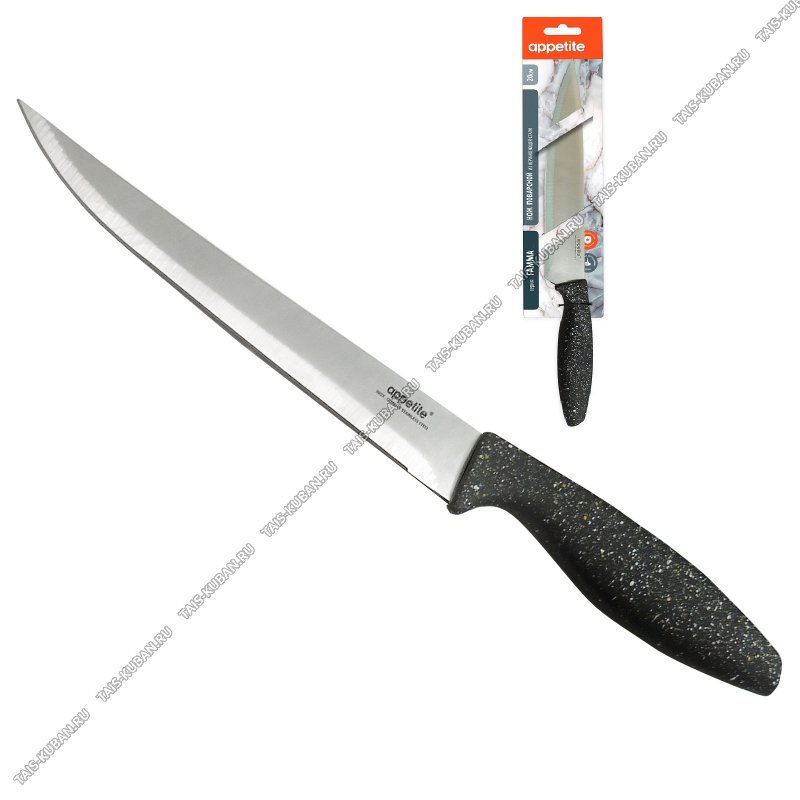лезвие нержавеющая сталь 2Cr13,толщина 2,0мм,прорезиненная ручка черный "гранит",блистер,Appetite