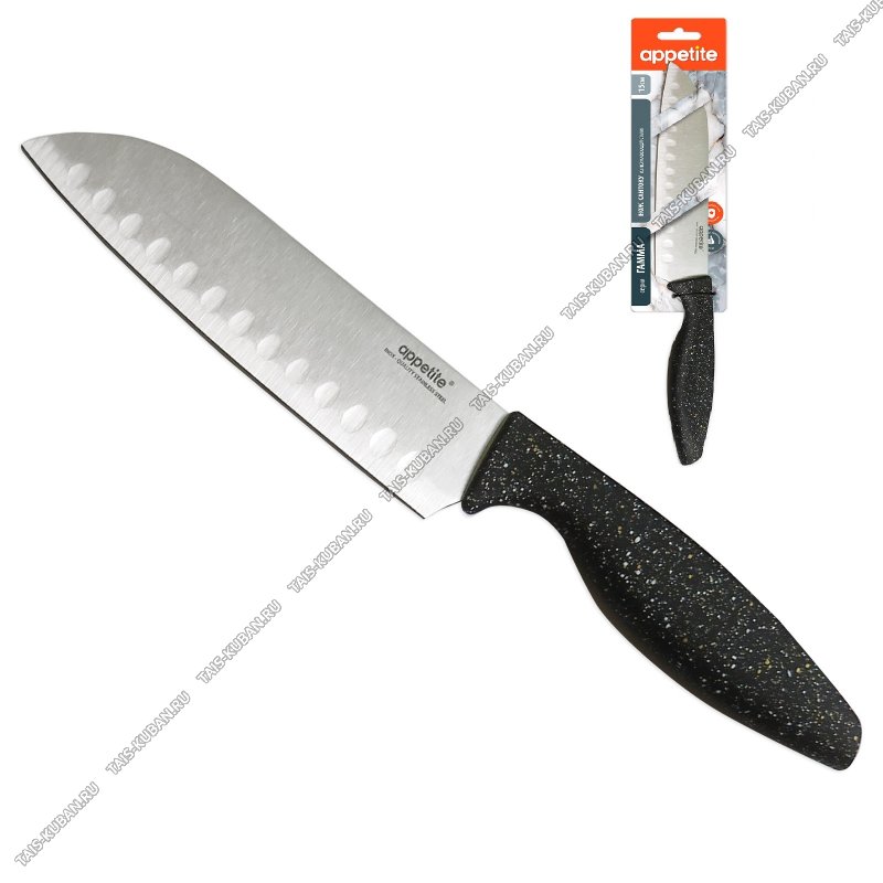 лезвие нержавеющая сталь 2Cr13,толщина 2,0мм,прорезиненная ручка черный "гранит",блистер,Appetite