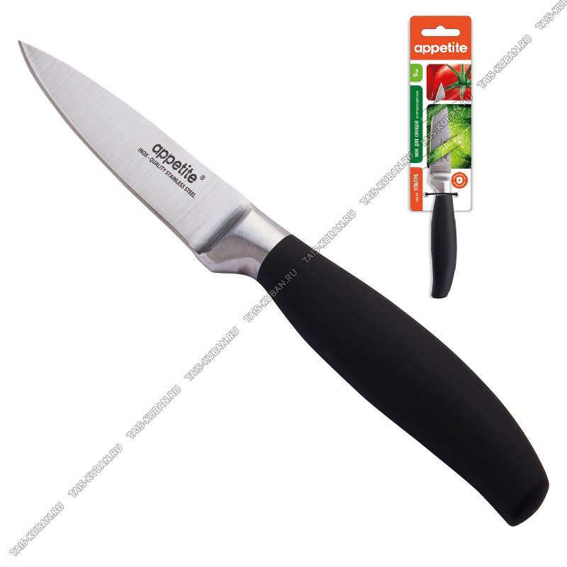 лезвие нержавеющая сталь,толщина 2,0мм,черная прорезиненная ручка,блистер,Appetite