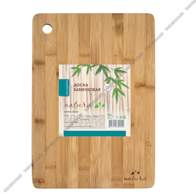 Бамбук Доска разделочная 35х25 толщина 1,5см,отверстие для подвешивания (30)