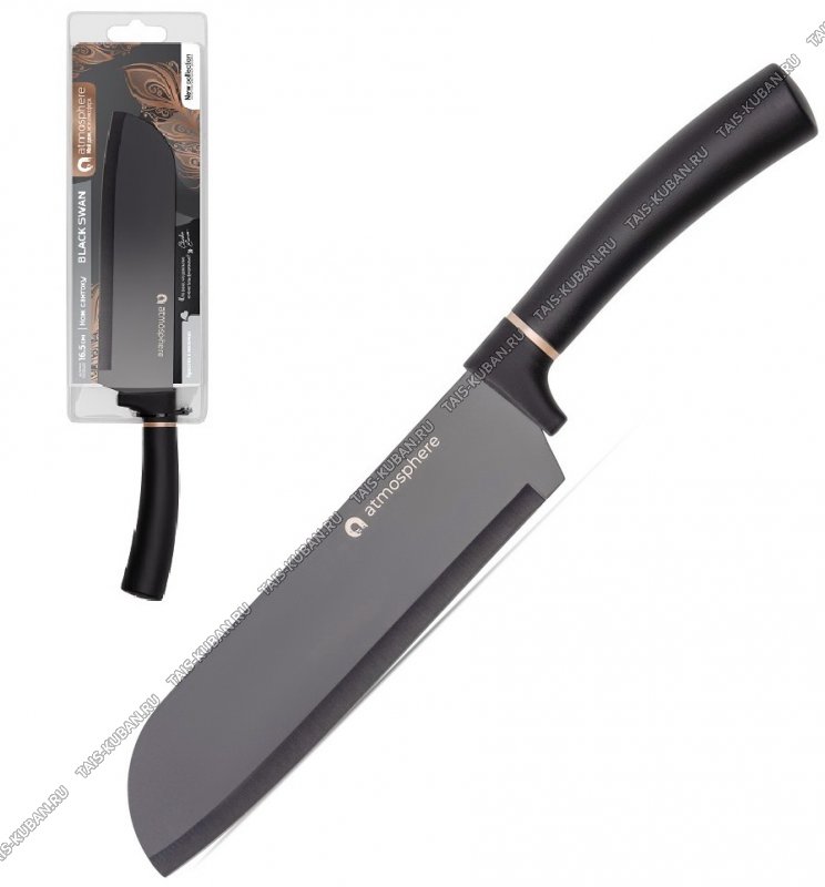 Black Swan/черн с зол.полос Нож L16см сантоку,ручк.прорезин (12)