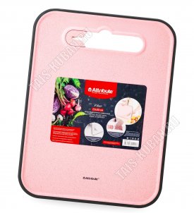 "Fiber" Доска раздел (пластик) с ножеточк,прям.(30х23 толщ.0,9см) прорезин.край,вырубн ручк,св.розов (12)