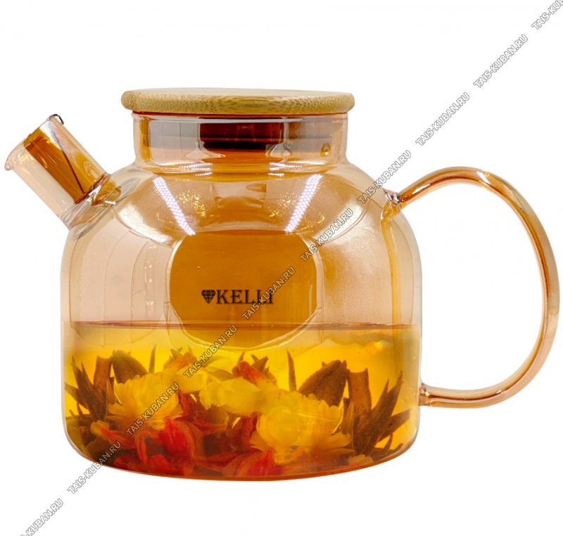 Чайник заварочный (стекло+бамбук) 1,0л медовый (24)