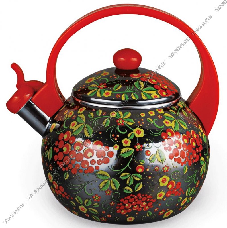 Чайник 2,5л "Хохлома" со свистком,черный (12)