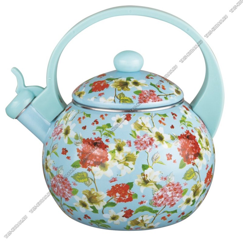 Чайник 2,5л "Цветочный микс" со свистком,голубой (12)