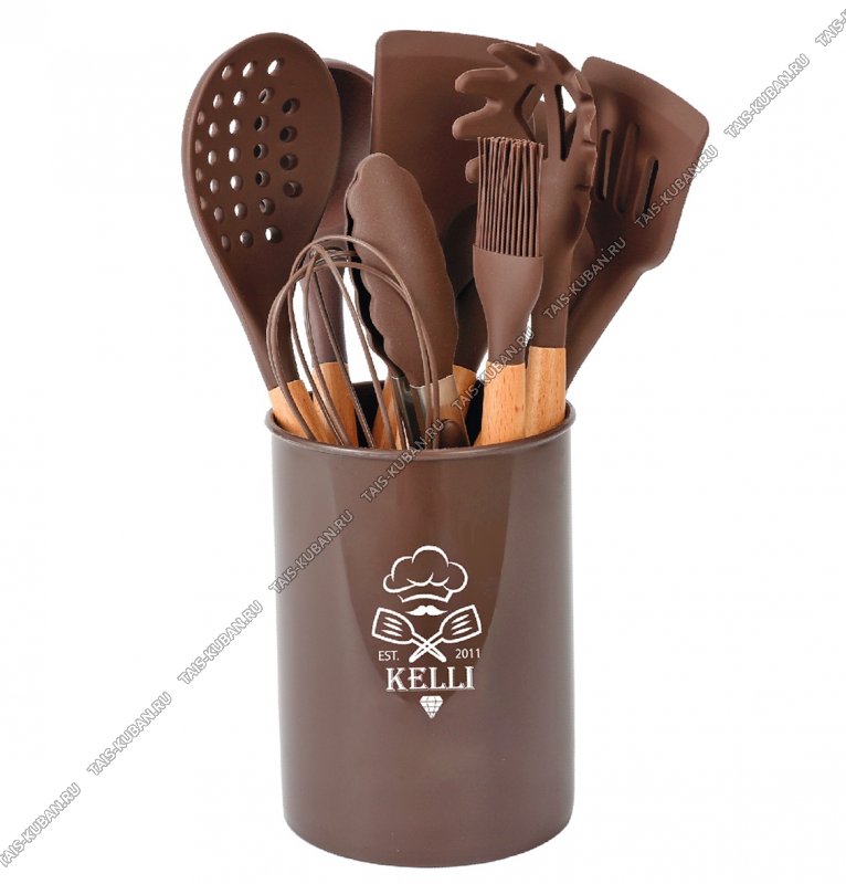 Кухонный н-р 12пр.в стакане d13 h15см,шоколадный Кухонный н-р 12пр.в стакане d13 h15см,шоколадный