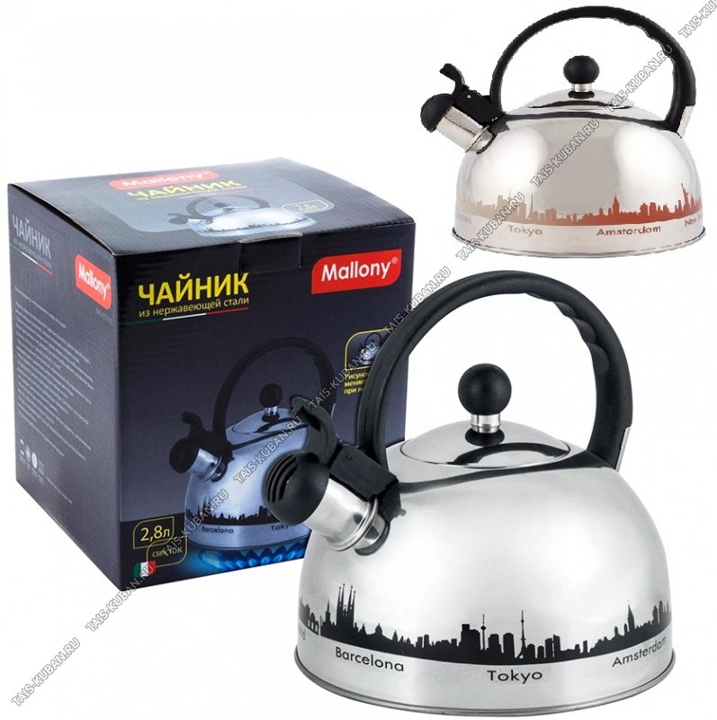 Чайник нерж ТЕРМО 2,8л "Страны мира" свист,инд.капсул.дно,узор меняет цвет при нагреве,подвижн.ручка бакел.черн,матов,п/у (12)