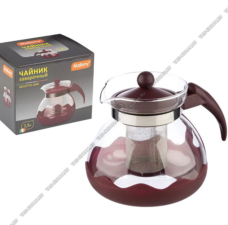 Чайник завар (стекло+пластик) "Decotto" 1,5л нерж.фильтр,коричн,п/у (24)