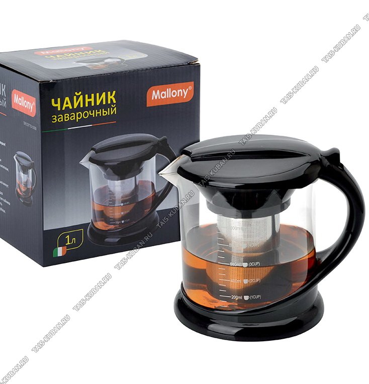 Чайник завар (стекло+пласт) "Decotto" 1,0л нерж.фильтр,черн,п/у (12)