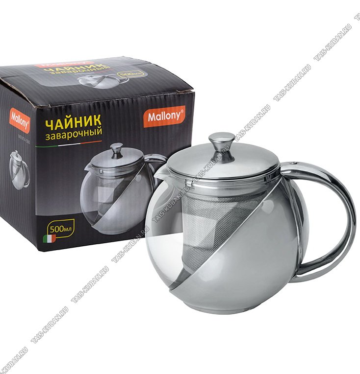 Чайник завар (стекло+нерж) "Menta" 0,6л ф.шар,п/у (12)