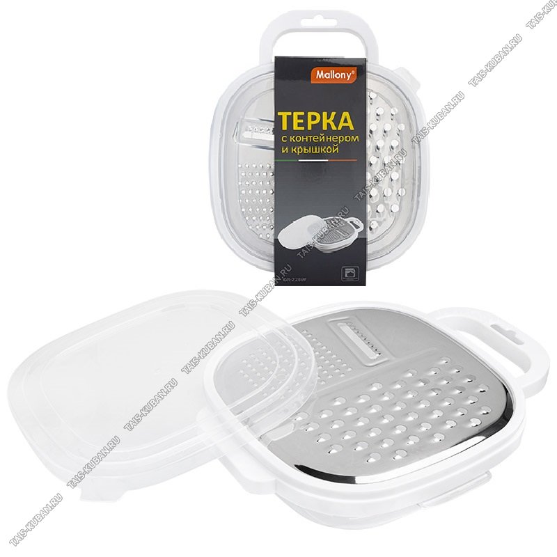 Терка с контейнер 0,3л, 19х19см,3в1 (крупн,мелка,фигурн.слайсы) с крышк,нерж+пластик,бел (20)