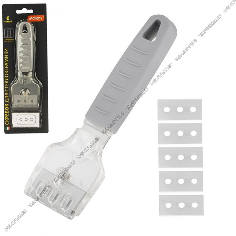 Скребок д/чистки стеклокерамических плит 16х5см+5лезвий в комплекте (12)