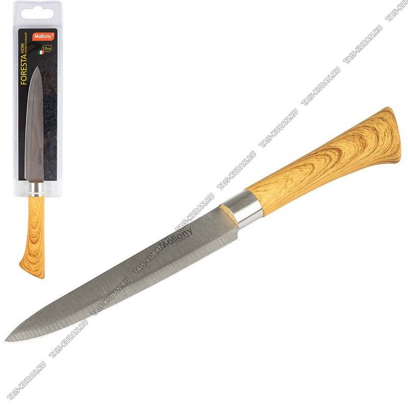 лезвие нержавеющая сталь 2CR14 толщиной 1,2мм,пластиковая ручка soft-touch "дерево",блистер,Mallony