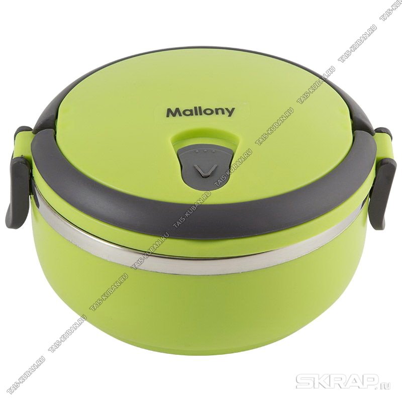 Ланч-бокс 0,6л (нерж+пластик) широк.горло d11см,пласт.корпус зелен,2 ручк.защелк.