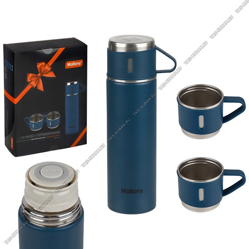 Набор "Festa" Термос 0,5л +термокружка 3шт по 0,15л,пробка-кнопка,крышка-чашка,подарочная упаковка,Mallony
