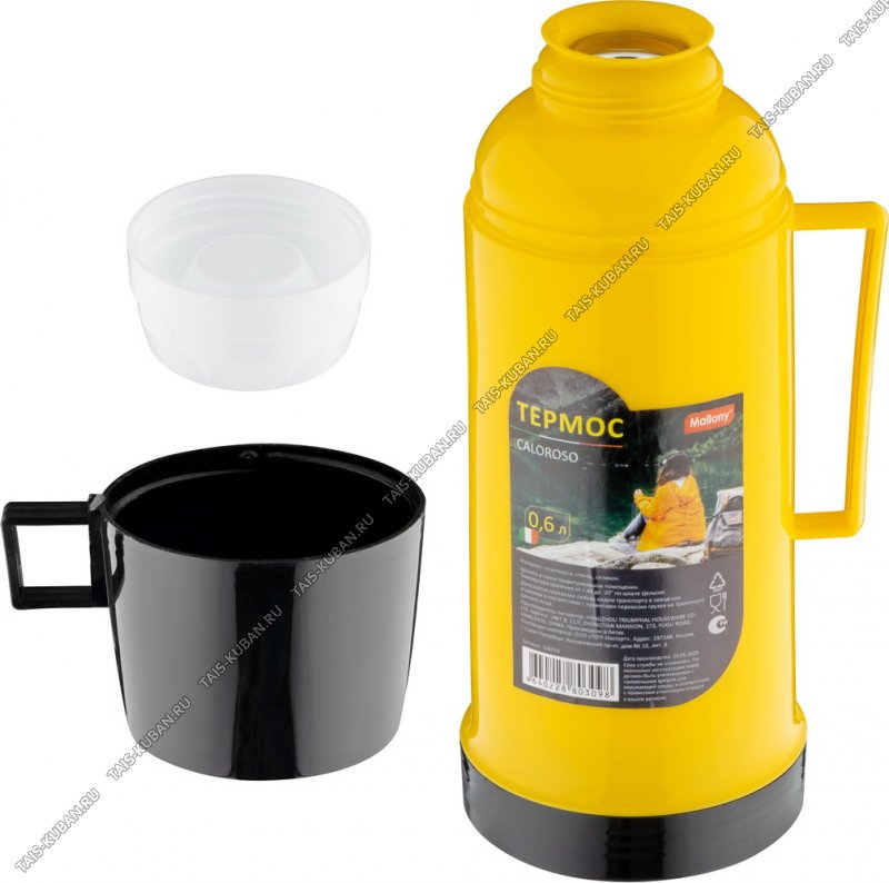 Термос "Coloroso" 0,6л крышка-чашка,жёлт/черн,руч,п/у (12)