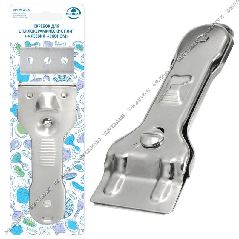 Скребок д/чистк.стеклокер.плит L20см+лезвия 4шт,нерж (12)