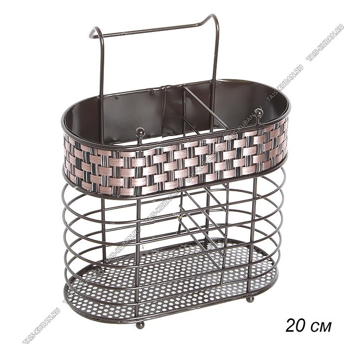 Подставка д/стол.прибор,на рейлинг 2-х секц.(16х8 h13см) "Плетение" прут,на ножк,коричнев, металл (12)