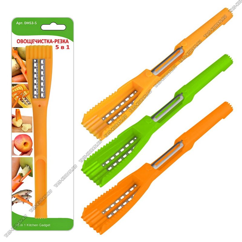 Овощечистка 5-в-1 L24см (терка,удал.сердцев,рыбочист,декор.нож) нерж+пласт,2цв.(12)