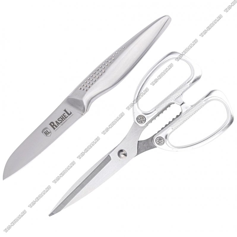 нож цельнометаллический для овощей L9см,ножницы универсальные L21cм,лезвие нержавеющая сталь 18/10,литые ручки с перфорацией,блистер,Rashel