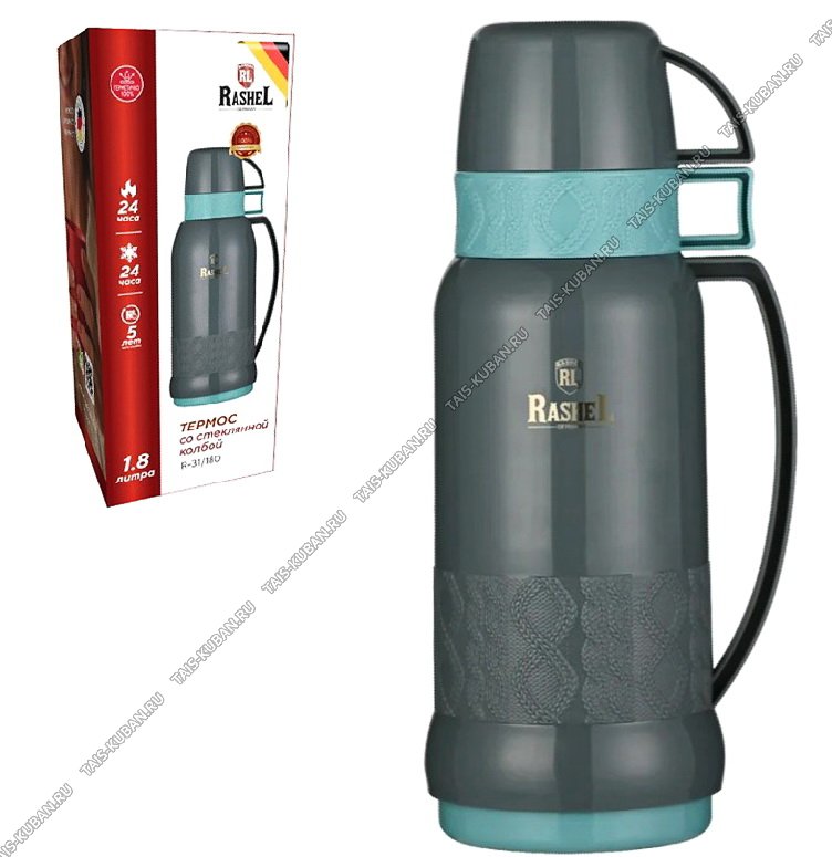 Термос (стеклянная колба) Термос (стеклянная колба) "Вязаный узор" 1,8л ,темно-зелен/бирюза (12)