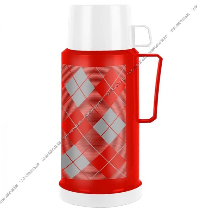 Термос (стеклянная колба) "Клетка" 1,8л ,красный с белым (12)