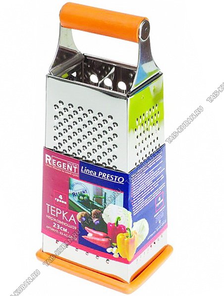 Терка 4х гран, h23см,нерж.сталь,ручк нерж+пласт,прорезин.дно,оранж (12)