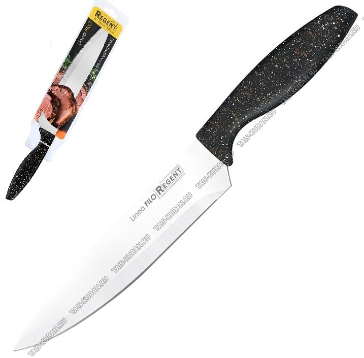 лезвие нержавеющая сталь 3Сr13,бакелитовая ручка,черный с бело--золотым крапом,блистер,Regent