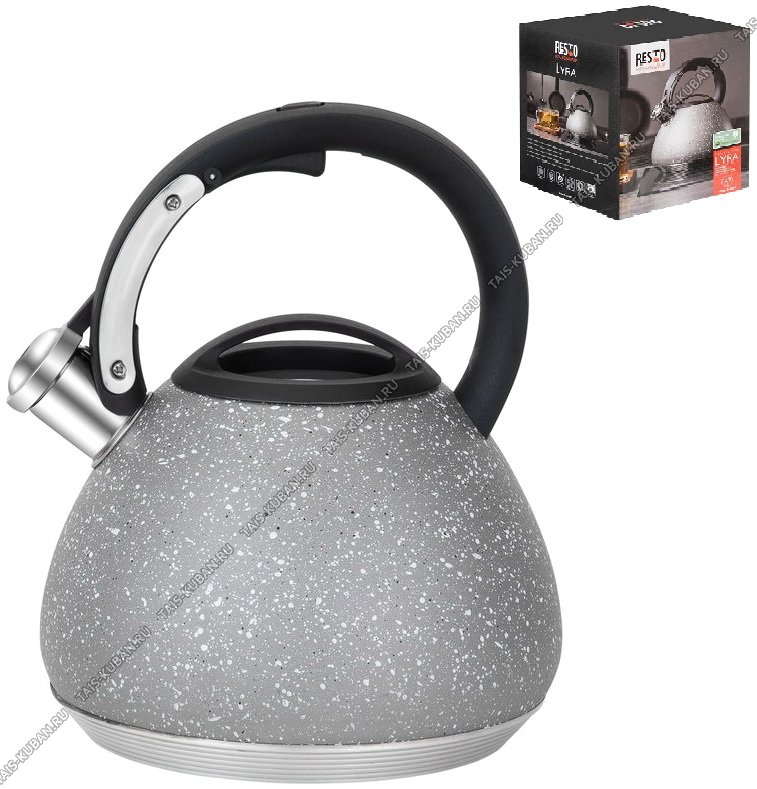 Чайник нерж 2,7л "гранит" серый,свист,индукц.капсул.дно,ручка металл/бакел.черн.с кнопк.д/открыван,матов,п/у (6)