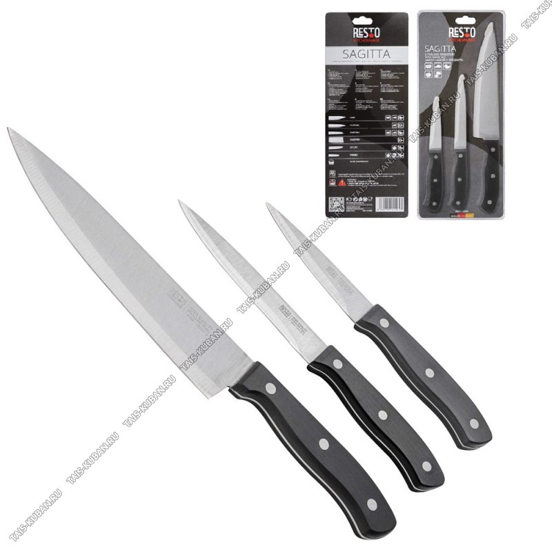 Н-р ножей 3пр "Saggita" (повар 20/универс 13/д/овощ 9см) лезв.нерж сталь,черн бакел.руч,блистер (12)