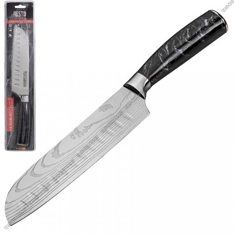 Eridanus Нож сантоку L19см,лезв гравир.п/дамасскую сталь 5CR15MOV,бакел.руч черн."мрамор",блистер (12)