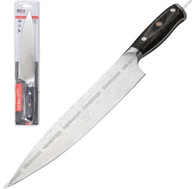 Ogma Нож поварской L20см,лезв гравир.п/дамасскую сталь 5CR15MOV,литая руч с дерев.встав,блистер (12)