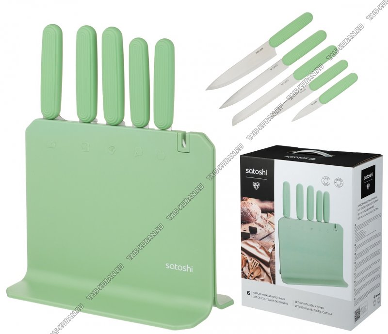 шеф-нож 20см/д/хлеба 19см/универсальный 13см и 15см/д/овощей 9см) лезвие нержавеющая сталь3Cr13,пластиковая ручка,зеленый,подарочная упаковка,Satoshi