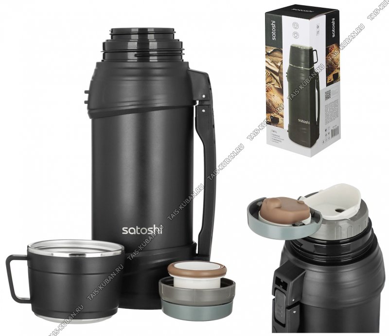 крышка-чашка,ваакумная пробка-поилка,ремешок д/переноса,цвет черный матовый,подарочная упаковка,Satoshi