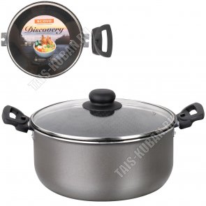 "Discovery" Кастрюля 4,5л,2съемн.пласт.ручк,графит/внутр.рис "соты",стеклян.крыш,толщ.стен.и дна 2,5мм