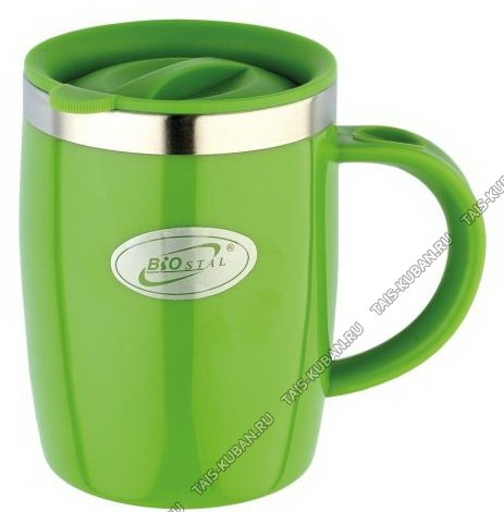 Термокружка (нерж+пластик) 0,4л "БИОсталь" зелен,пласт.корп/крыш/ручка,ф.цилиндр