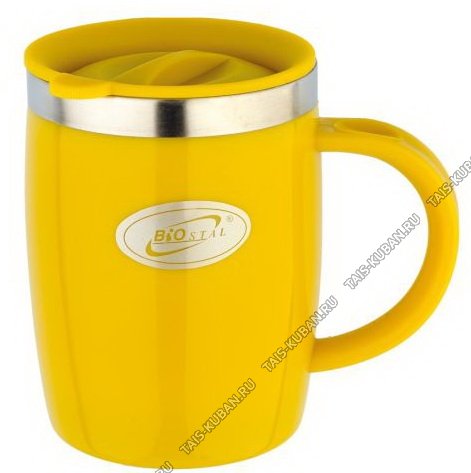 Термокружка (нерж+пластик) 0,4л "БИОсталь" желтый