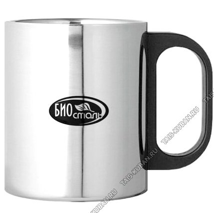 Термокружка (нерж) б/крышки 0,3л "БИОсталь" стальн,пластик.черн.ручк,ф.цилиндр